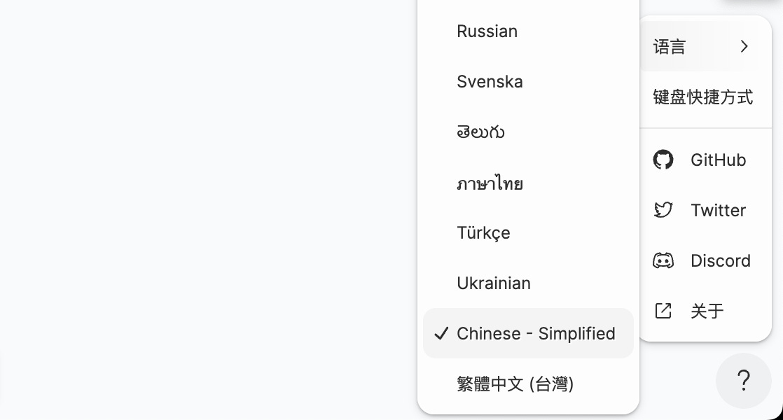 We’ve also brought over many translated words from the original version of tldraw, all of which were contributed by members of the community. This brings our list of partially supported languages to:
